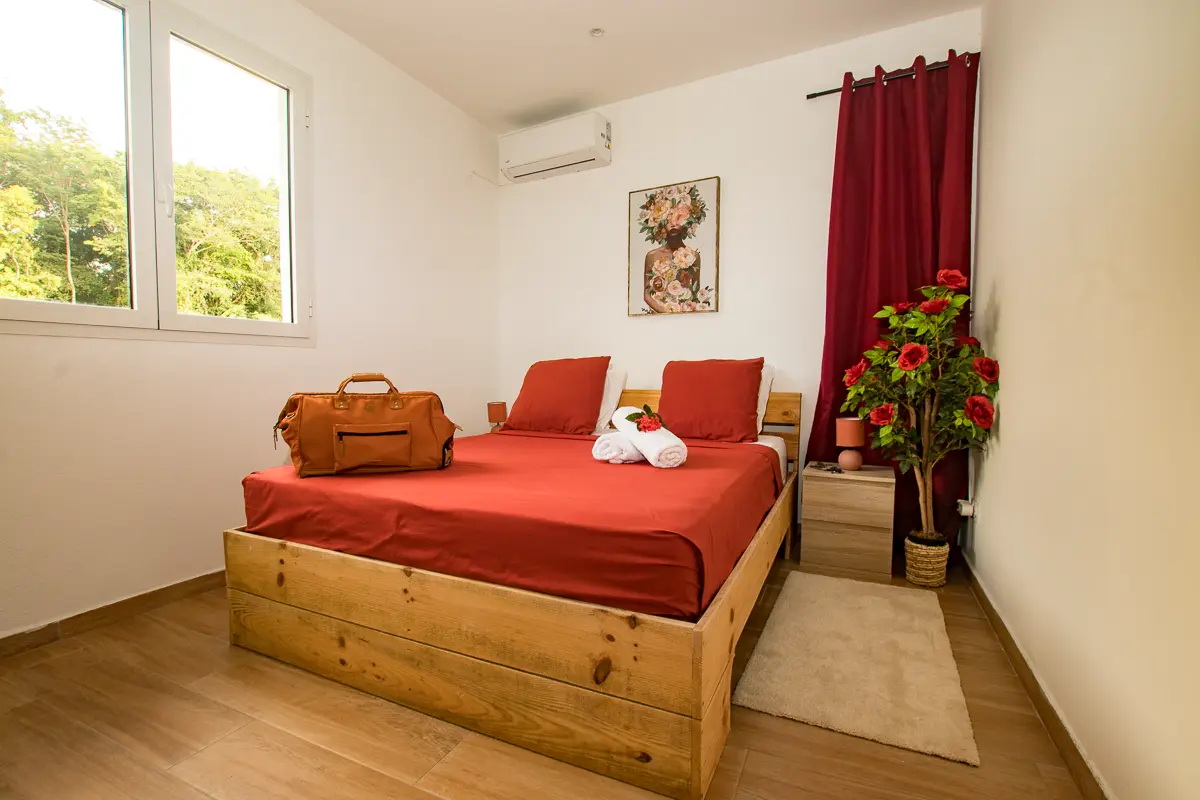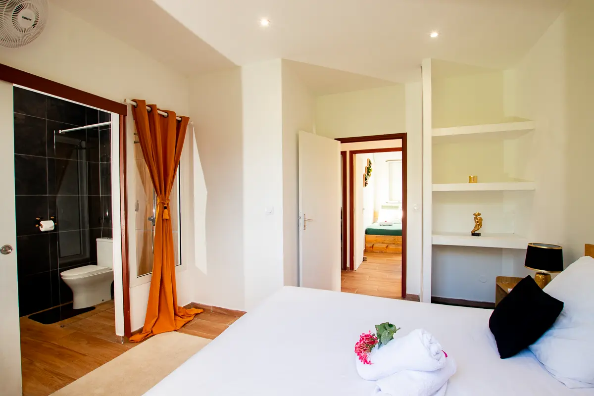 La villa peut accueillir jusqu’à 6 personnes avec ses 3 chambres climatisées, chacune disposant d’un confort douillet et de grands espaces de rangement. La cuisine équipée et son îlot central invitent à la convivialité au moment de préparer repas et apéros. tandis que le salon attenant permet de se relaxer dans un canapé confortable autour d'un verre ou devant la TV.