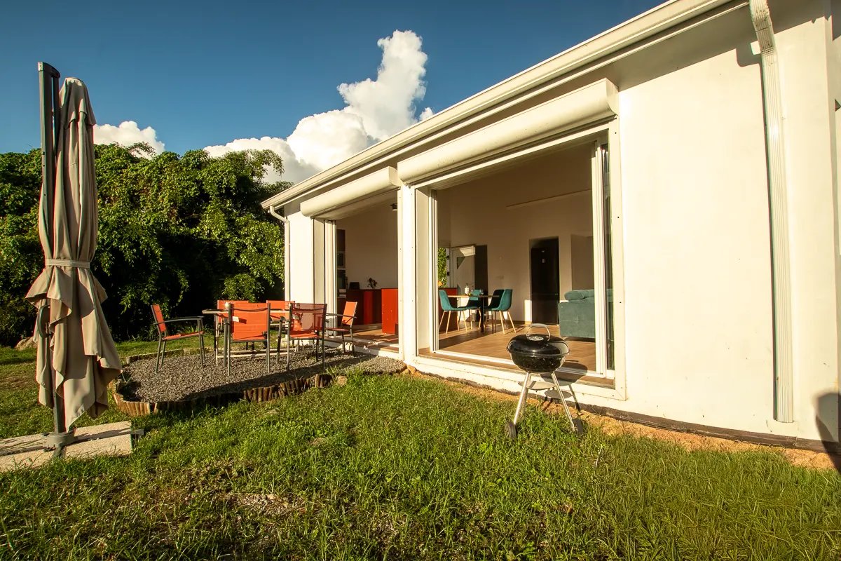 A l’extérieur, savourez un bon planteur au soleil couchant, dégustez vos langoustes fraiches ou brochettes de poisson grillées au barbecue dans un espace repas en terrasse dans le jardin,